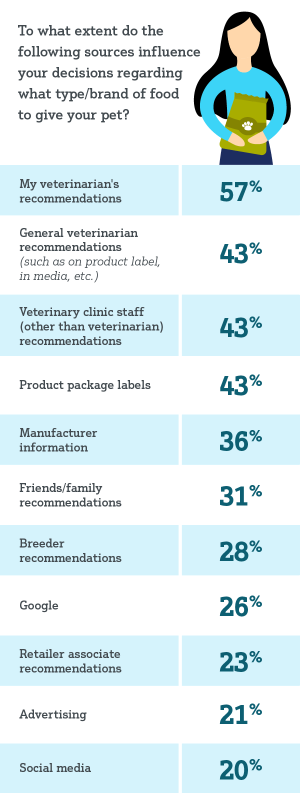 Pet owners have far more information channels available today to help them find the right pet food options than even five years ago. The primary veterinarian is not the sole influencer for pet food. Gone are the days when a pet food brand can live completely off of a veterinary recommendation alone.